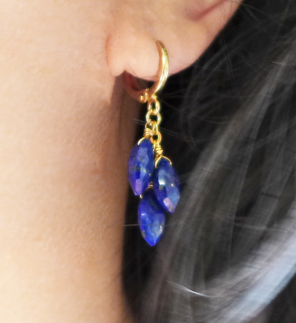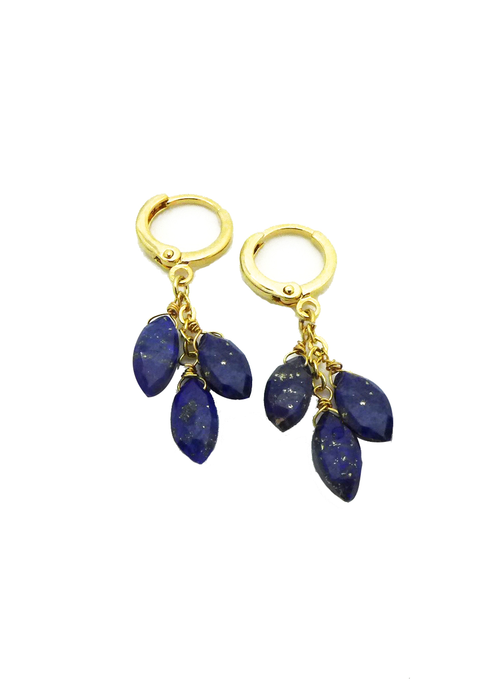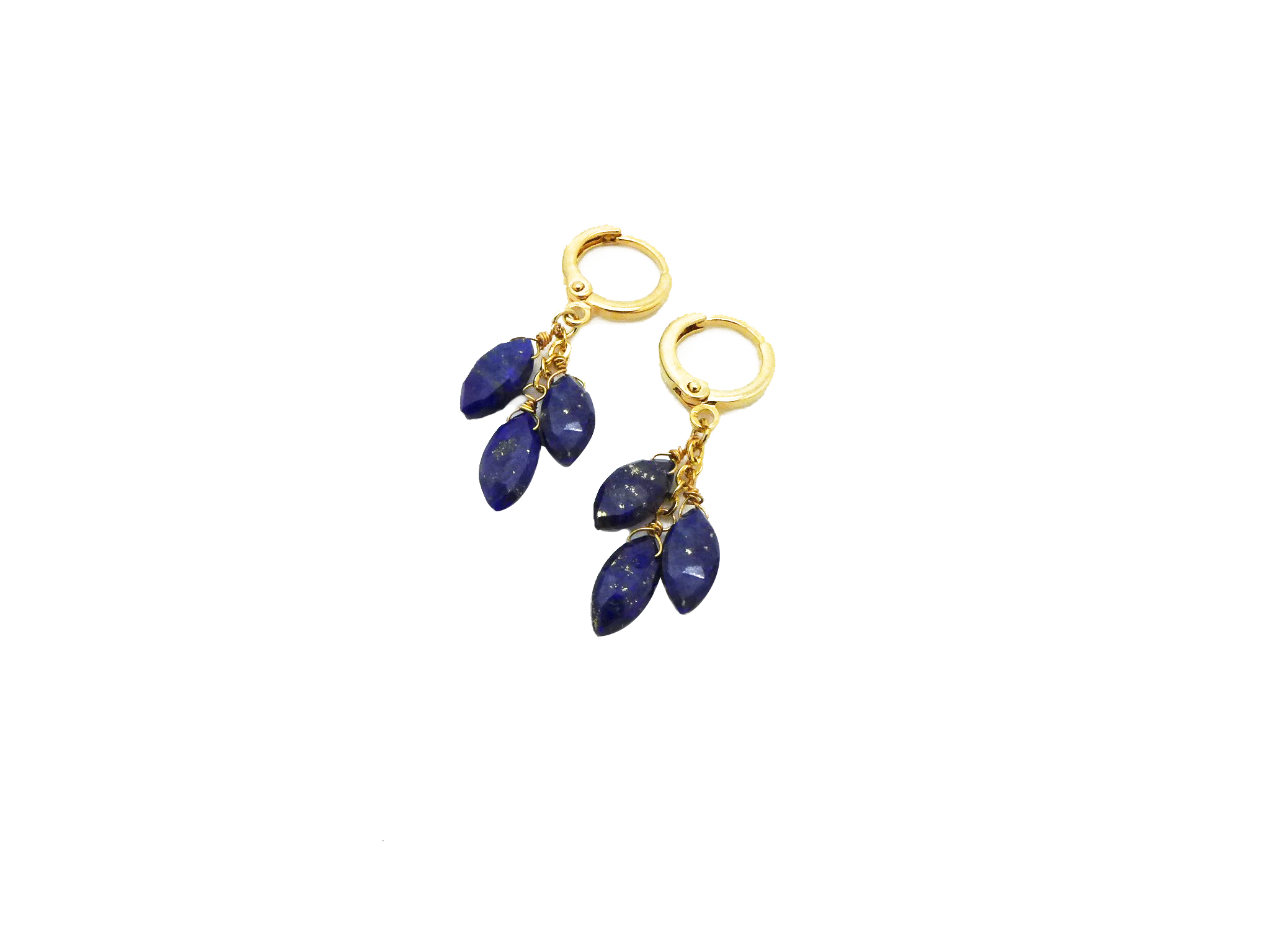 These earrings feature beautiful marquise shaped lapis lazuli stones dangling from 14K gold filled ear hoops.