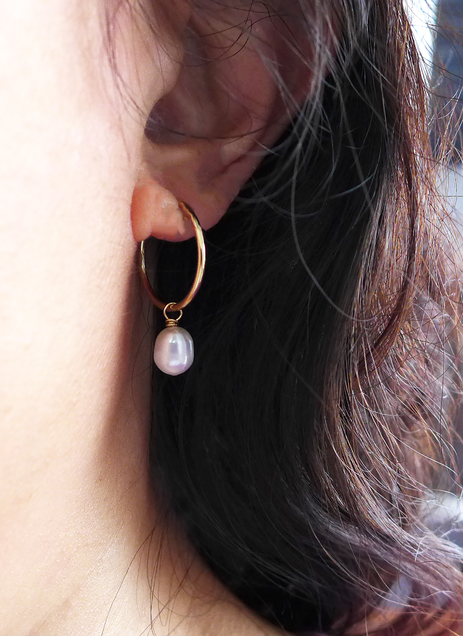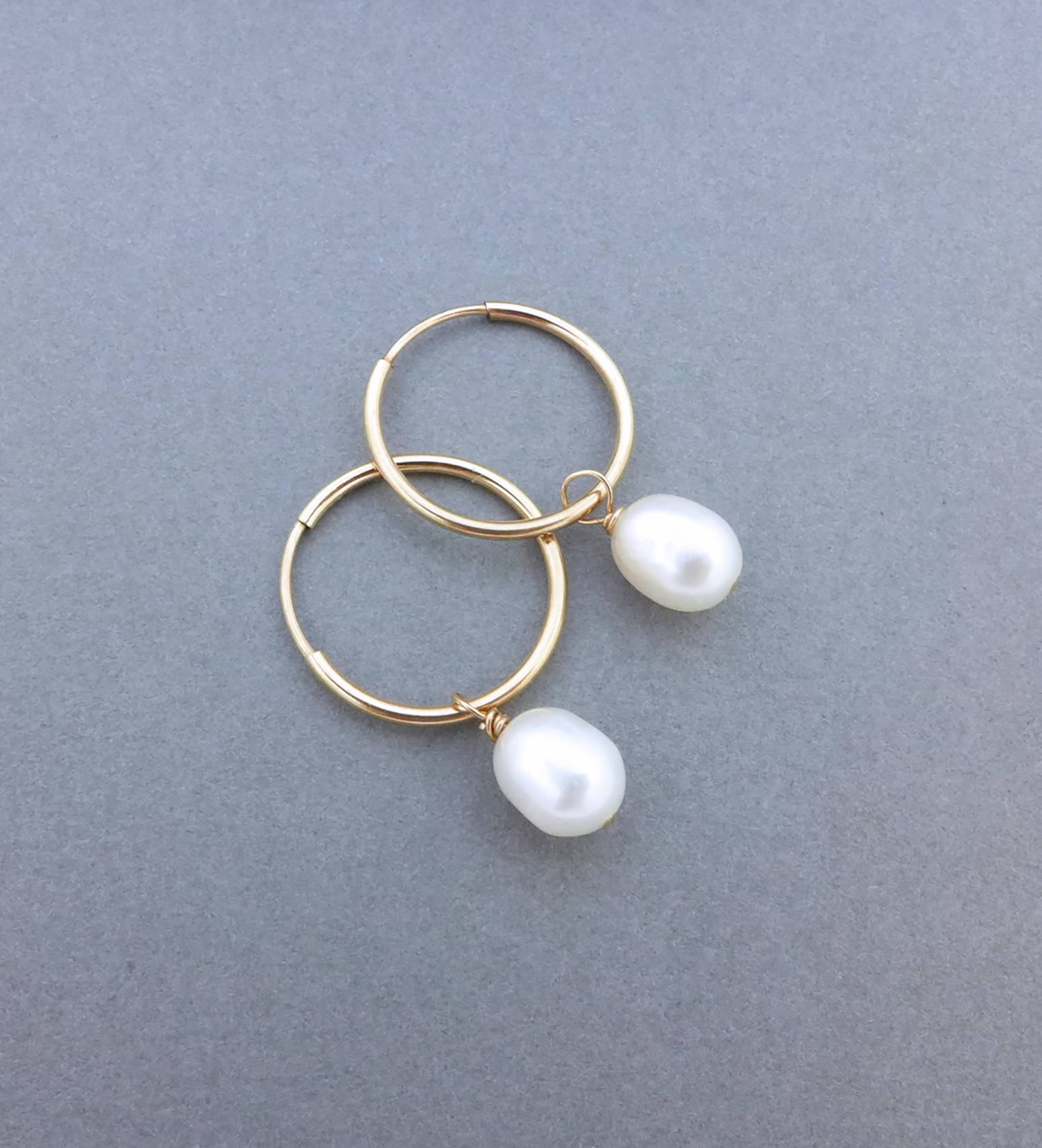 Stylish 14K gold filled endless hoop earrings with baroque freshwater pearls