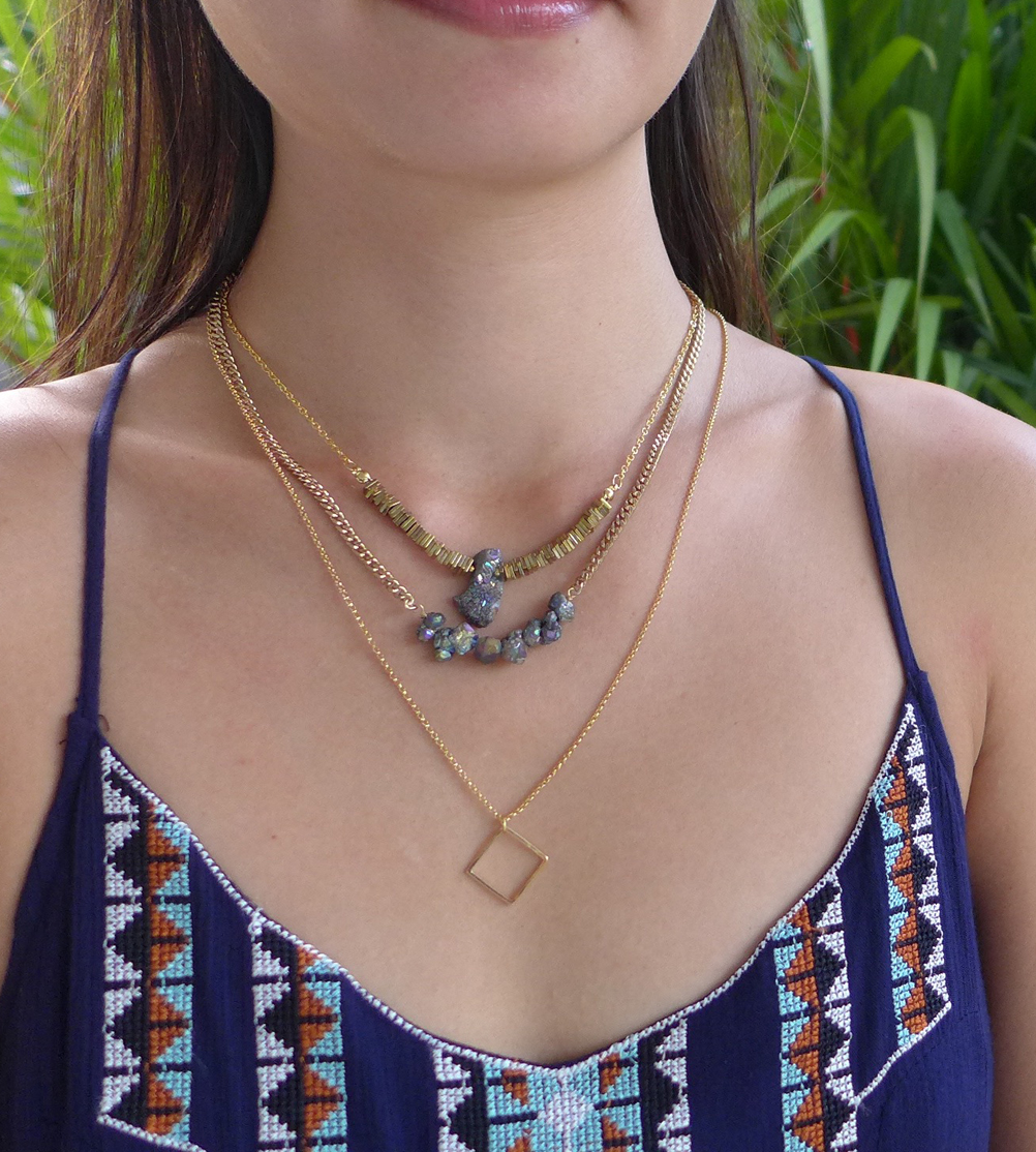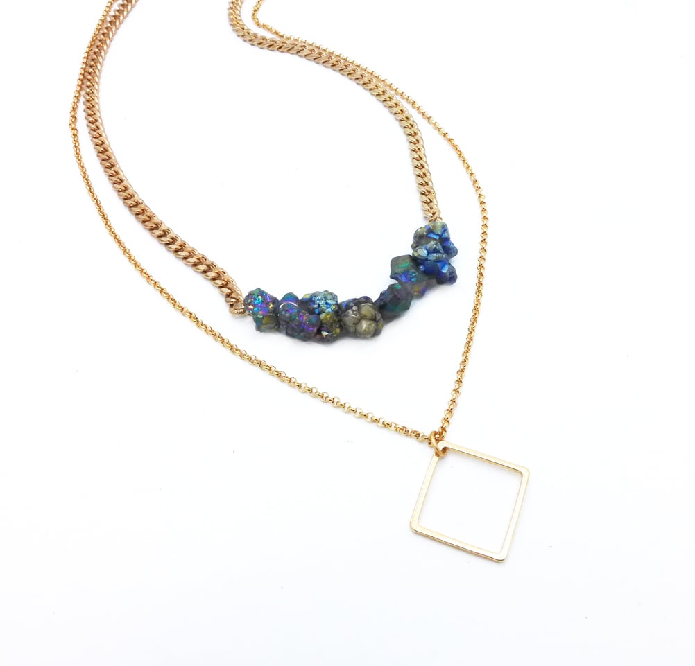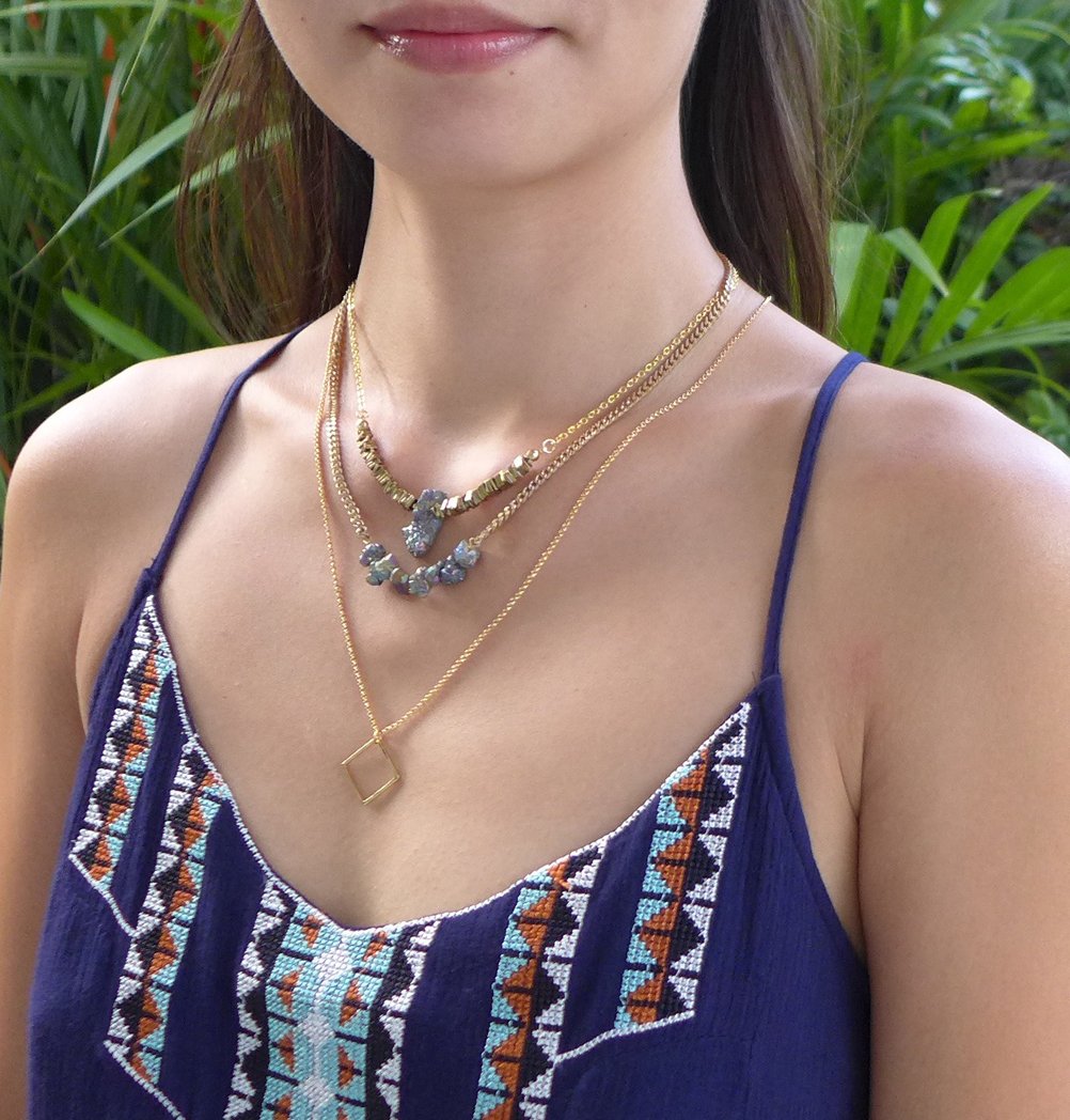 *Pyrite necklace measures 16", Square necklace measures 22".