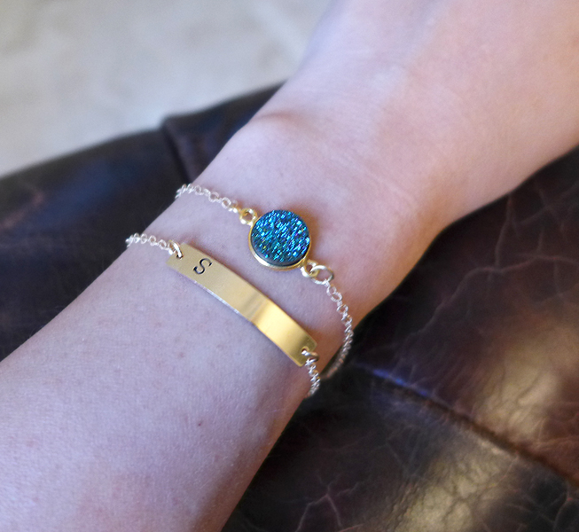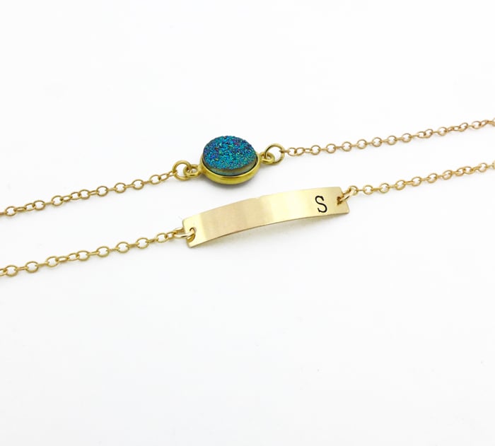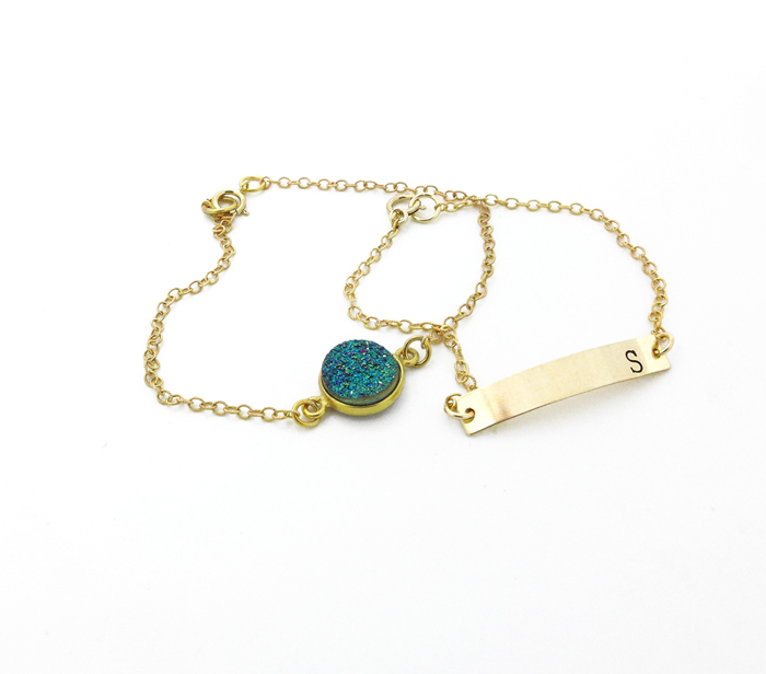 ♥ Hand stamped personalized inital bar bracelet. Bar, findings and chain are 14K gold filled.