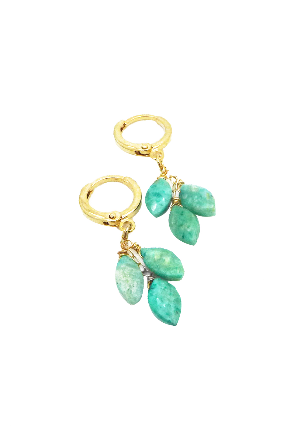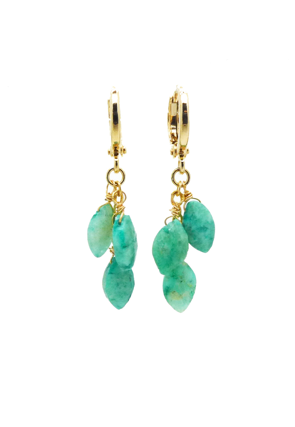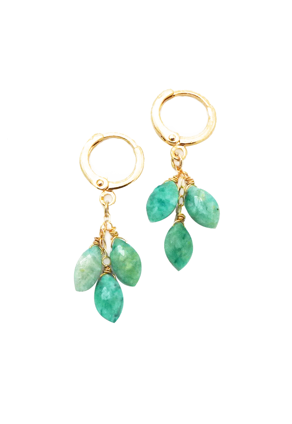 These earrings feature beautiful marquise shaped chrysoprase stones dangling from 14K gold filled ear hoops.