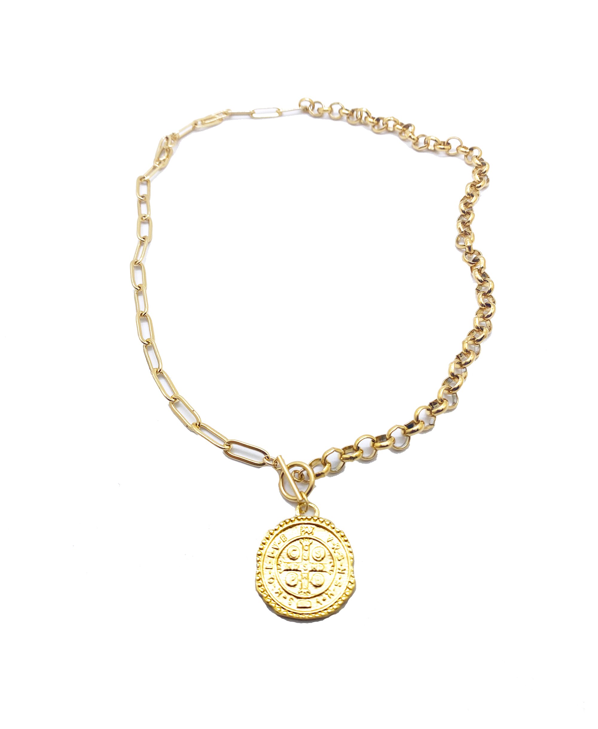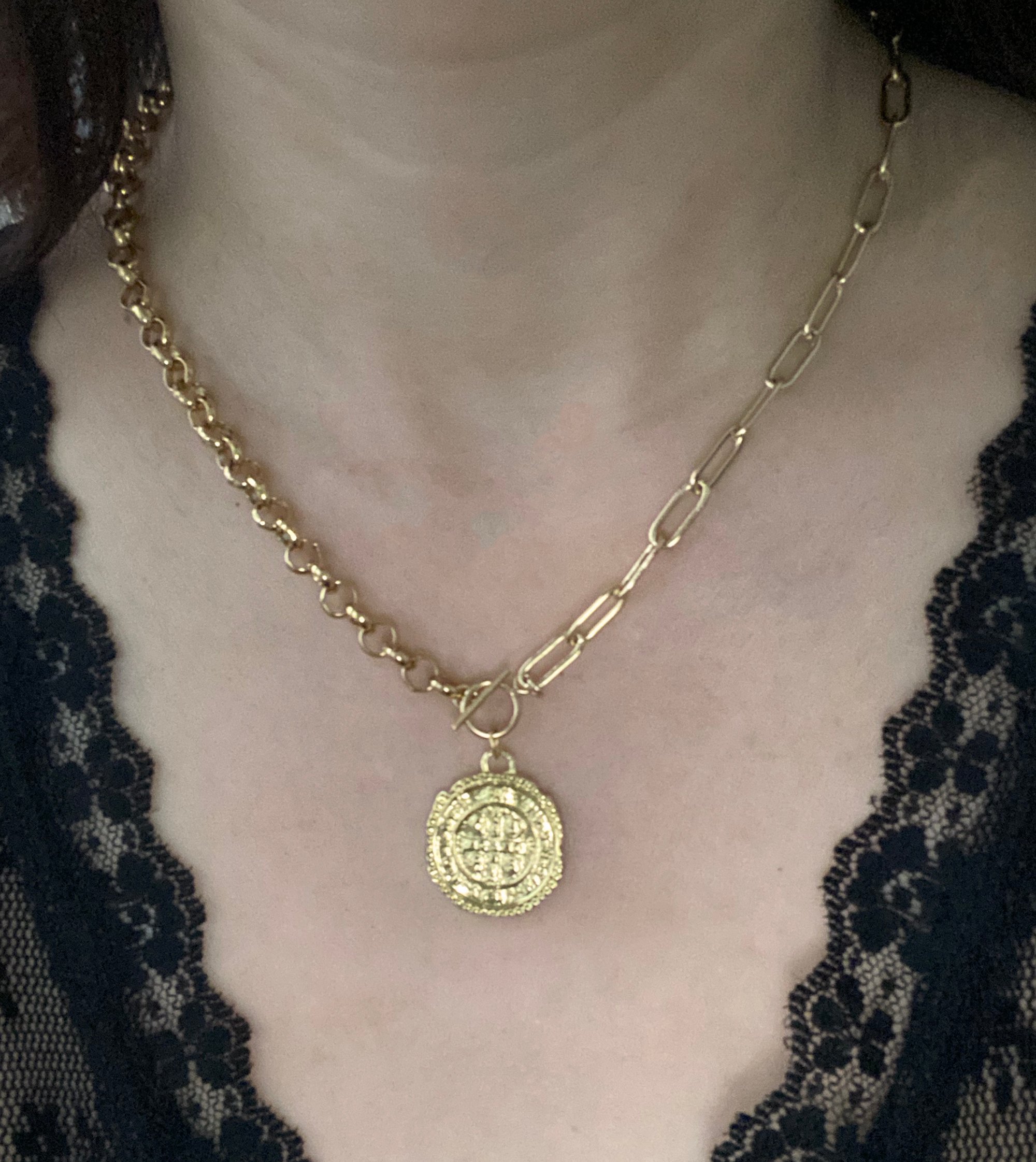 Chunky Statement Link and Rolo Chain with Medllion Cross Pendant -
